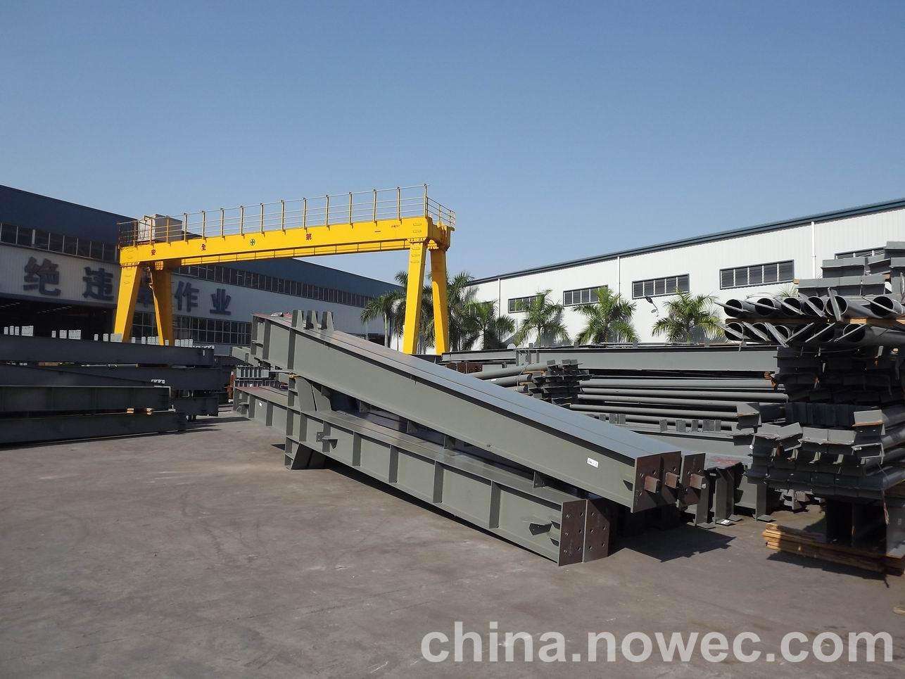 条状单元一般沿长跨方向分割,其宽度约为1~3个网格,其长度为l2或l2/2(l2为短跨跨距)。块状单元一般沿辛集网架平面纵横向分割成矩形或正方形单元。每个单元的重量以现有起重机能胜任为准。条(块)与条(块)之间可以直接拼装,也可空一网格在高空拼装。由于条(块)状单元是在地面拼装,因而高空作业量较高空散装法大为减少,拼装支架也减少很多,又能充分利用现有起重设备,故较经济。这种安装方法适用于分割后网架的钢度和受力状况改变较小的各类中小型网架,如两向正交正放四角锥、正放抽空四角锥等网架。